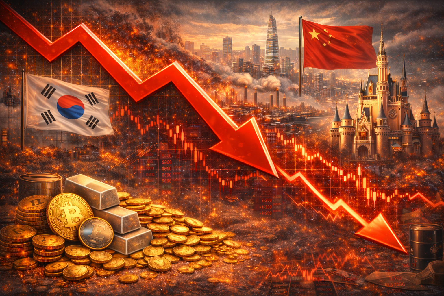 Asian markets opened the week under heavy pressure as a sharp selloff in South Korean equities set the tone for the region, while investors weighed mixed signals from China’s manufacturing sector, steep losses in precious metals, sliding oil prices, and a major leadership development at Walt Disney.